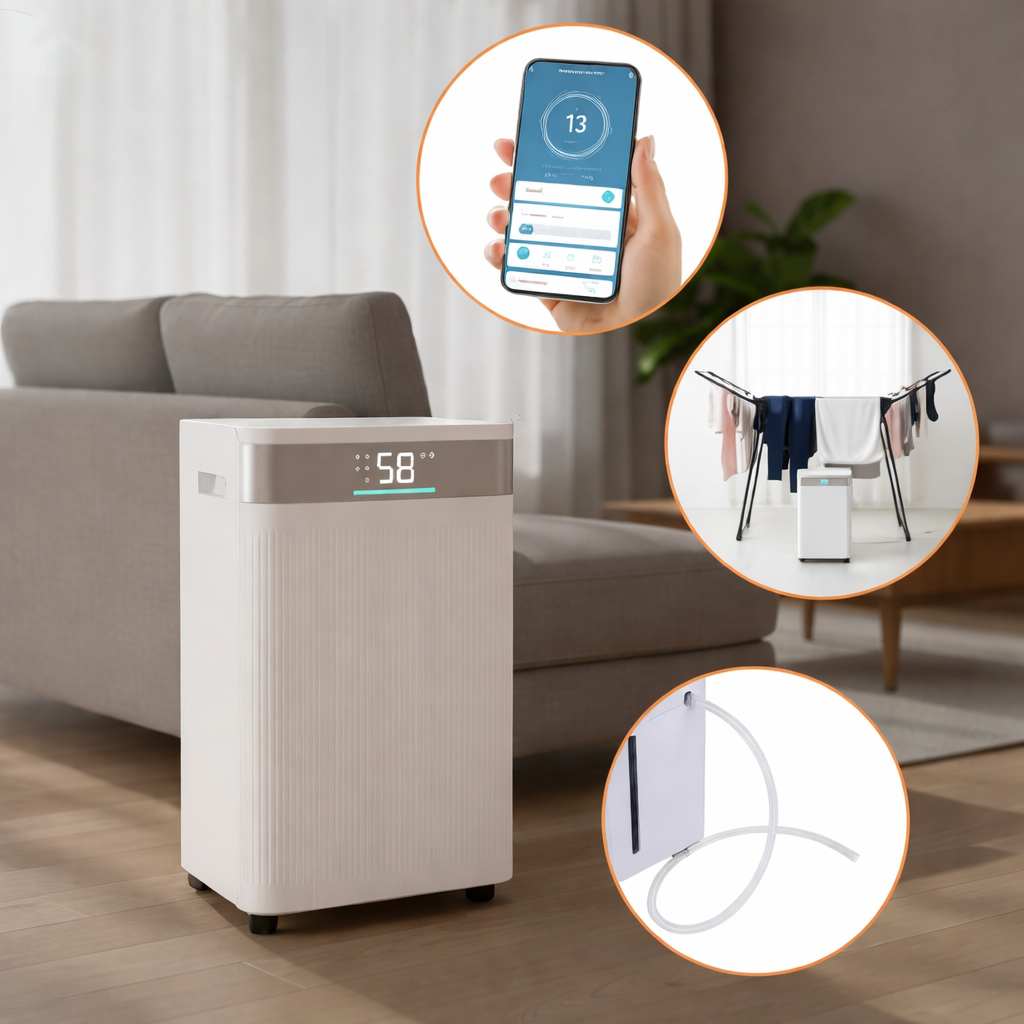 Med WiFi-funktion og "Smart Life"-appen kan du fjernstyre affugteren, indstille tidsplaner og overvåge luftfugtigheden i realtid – alt sammen fra din mobil.