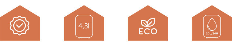 Med en rummelig vandtank på 4,3 liter og mulighed for konstant afløb via medfølgende slange, slipper du for hyppig tømning.