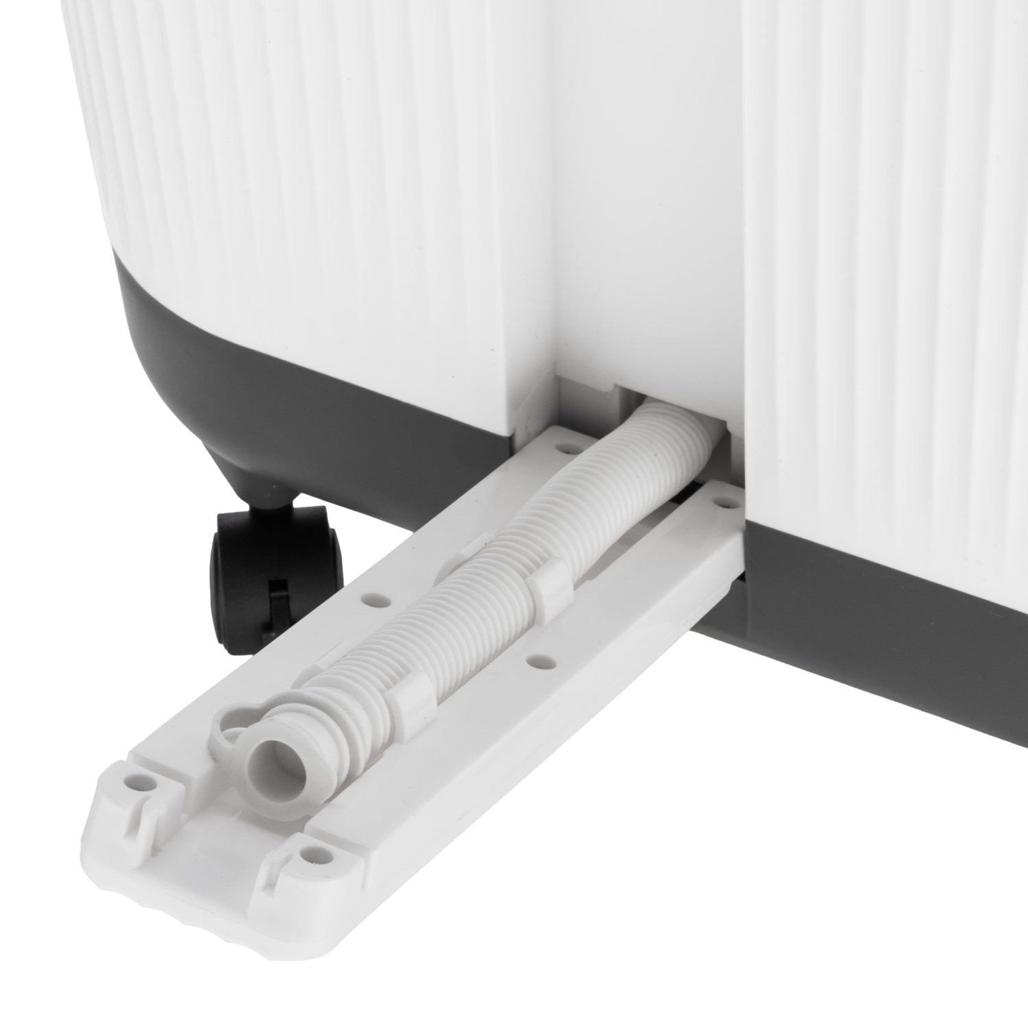 • Indbygget vandafløb og ledningsoprul – enkel rengøring og opbevaring