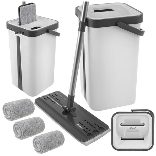 Oplev en smartere og mere hygiejnisk måde at vaske gulv på med dette fladmop-sættet med to-kammer spand. Ideel til både små og store hjem – her får du effektiv rengøring uden snavsede hænder og uden at skylle moppen i beskidt vand.
