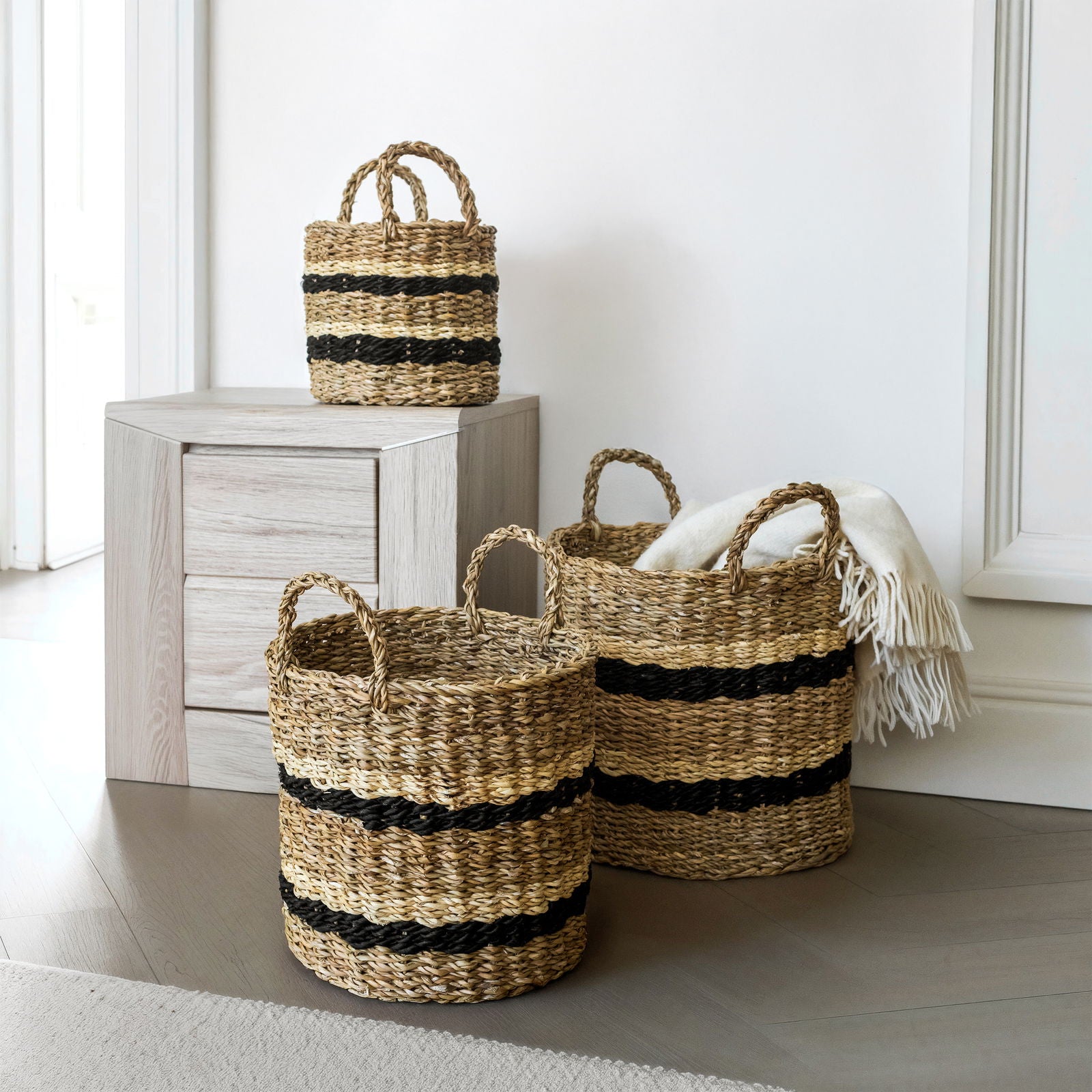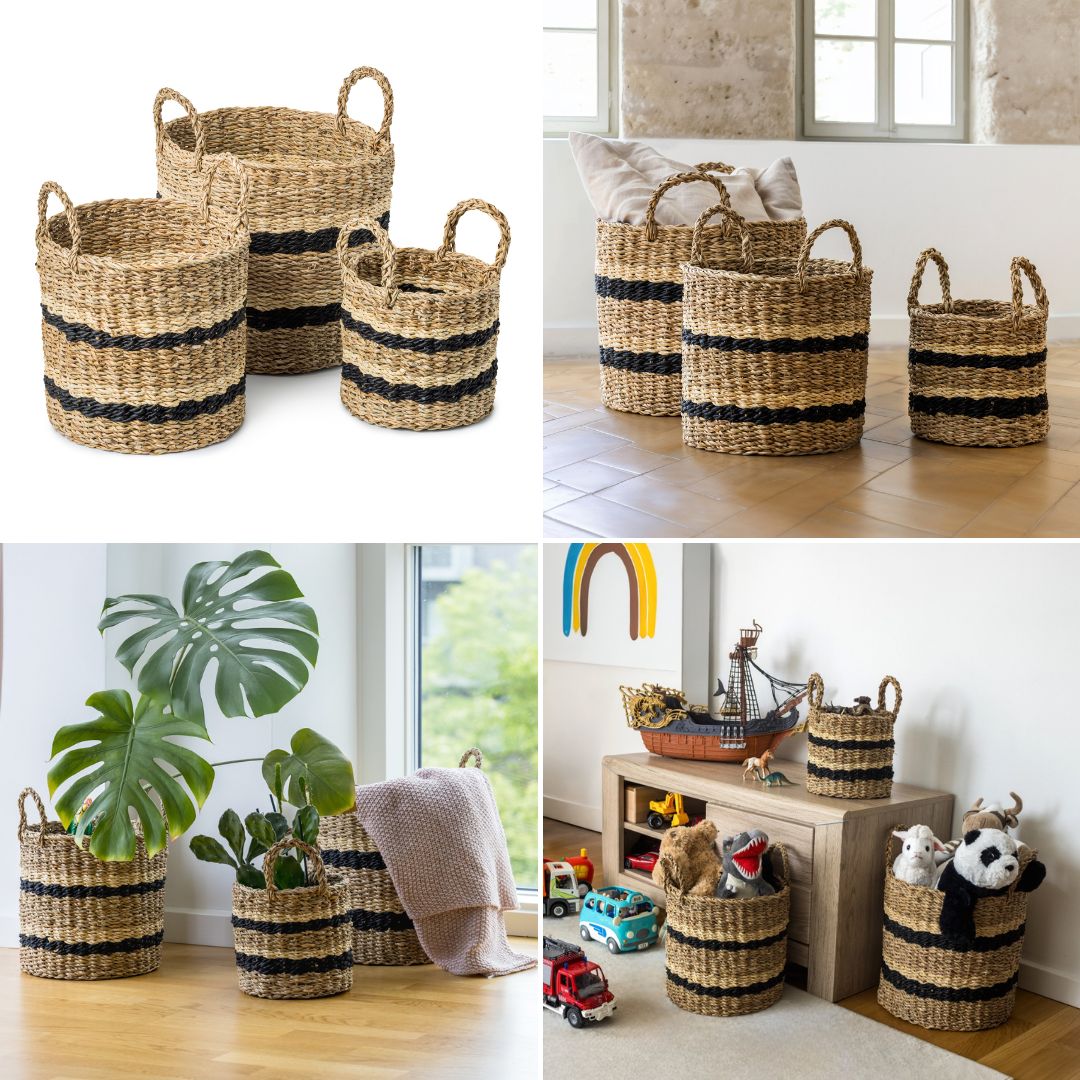 Bring naturens varme ind i dit hjem med dette smukke kurvesæt i søgræs fra Nordis. Sættet består af 3 dekorative kurve i forskellige størrelser, alle med fine, vævede striber, der tilføjer et moderne og nordisk præg til din indretning.