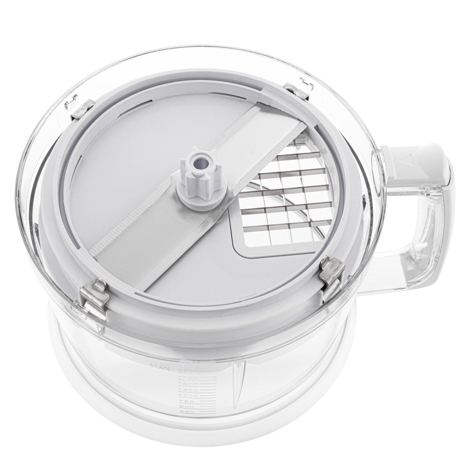 Det store 2,0L skål er perfekt til større portioner, mens det medfølgende 600 ml bæger med låg er smart til smoothies og opbevaring af dine ingredienser.