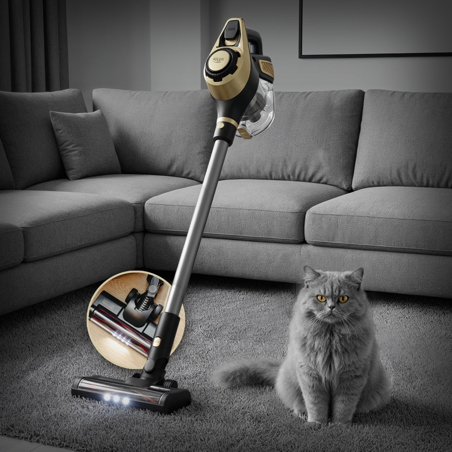 Gør rengøringen mere effektiv og komfortabel med denne støvsuger, der kombinerer stærk suge styrke, avanceret filtrering og moderne funktioner i ét kompakt design. Med en elektrisk motoriseret børste og indbygget LED-lys fjerner den effektivt snavs og støv fra både tæpper og hårde gulve – selv i mørke hjørner.